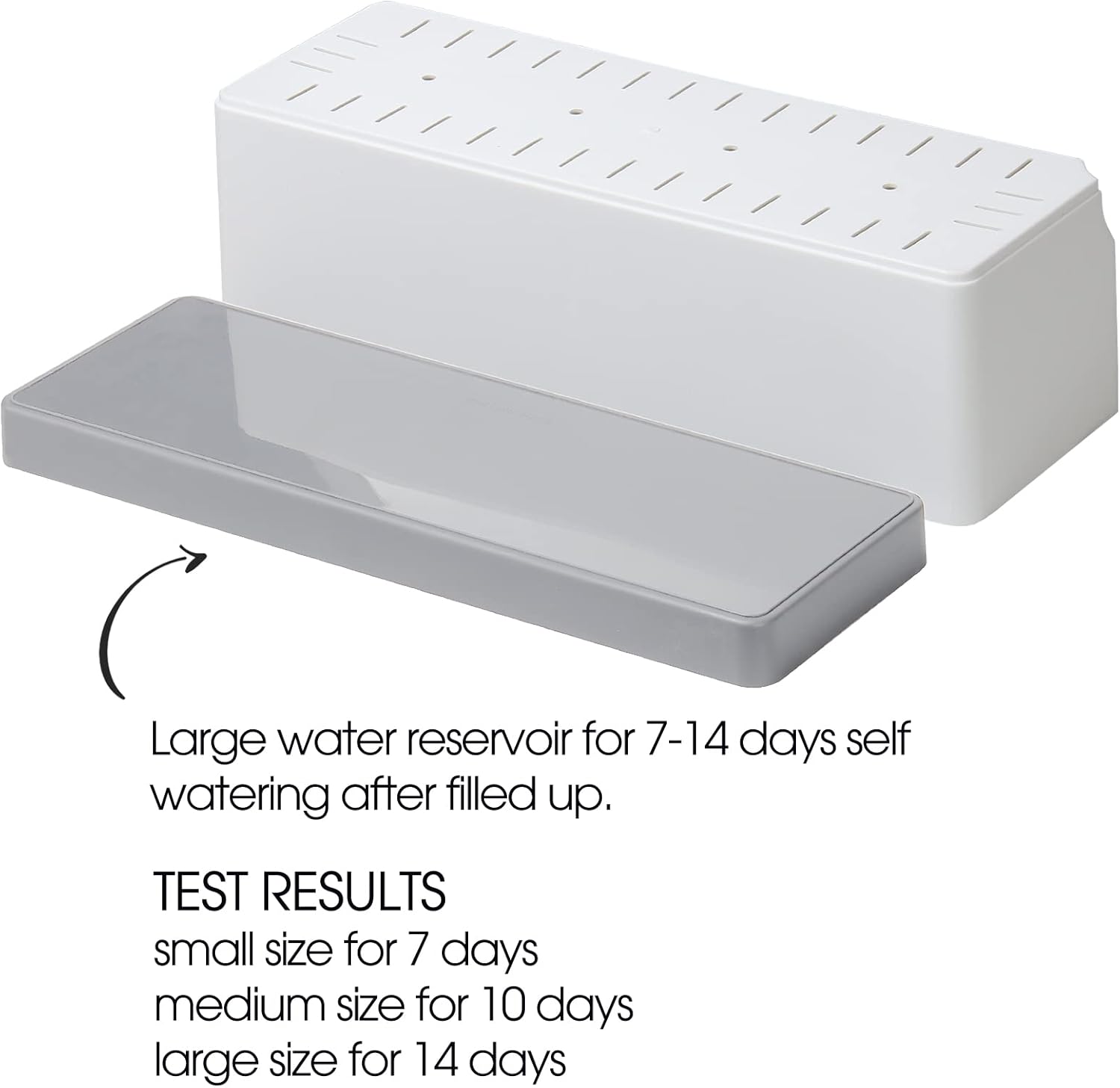 - 【SELF WATERING】Every self watering planter comes with a matched water reservoir and a cotton wick that draw water up to the potting soil to keep the soil at a fairly consistent moisture level, it can offer 7-14 days self watering after filled up. (The rate of water consumption depends on the potting soil and weather.)