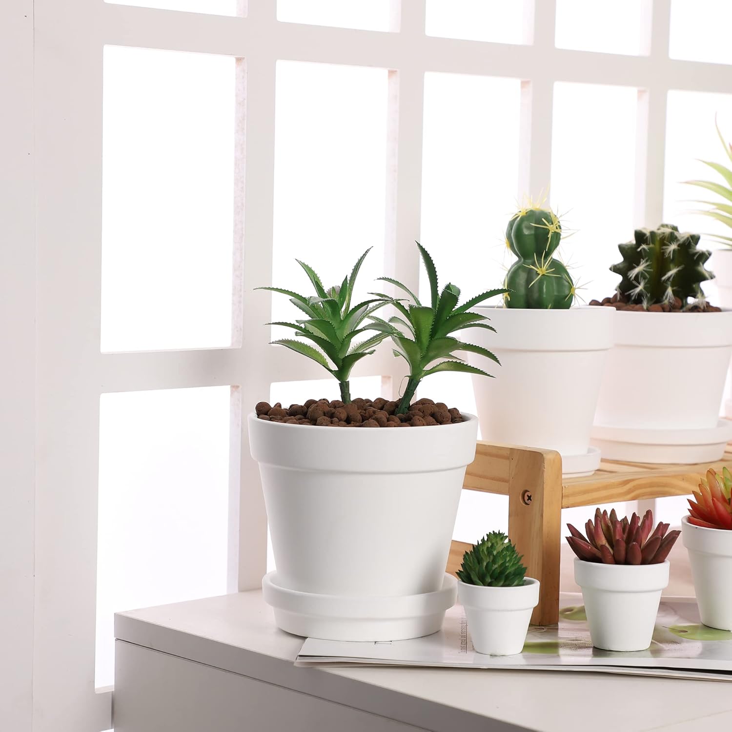 - ★ 【PREMIUM QUALITY】 Made of top-quality clay and baked at high temperature, Smooth Texture Finished in a Matte white Bisque.Air and water can pass through walls more easily.It's great for Cactus, Succulents, and other plants that prefer drier soil.At the same time, it is also suitable for colder climates. The walls of the pots draw the water out of the soil to help the soil dry quicker.