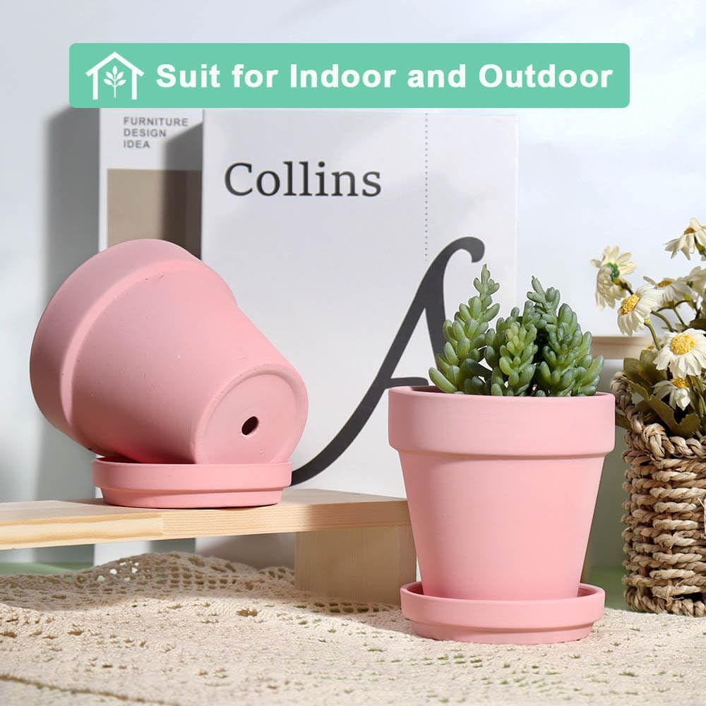- 【Premium Quality】The clay pot made of top-quality clay and baked at 1796°F high temperature, each Terracotta Pots with pink paint features great durability. All packages have passed the 3-foot drop test to ensure the pots stay intact during delivery.