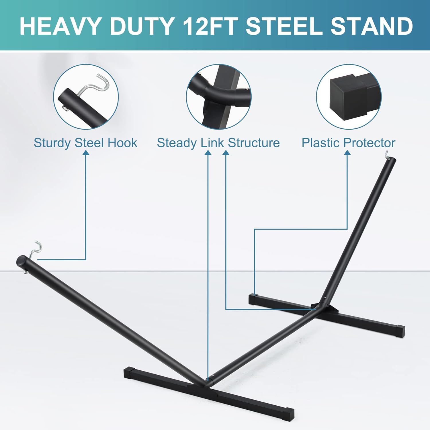 - 【Comfortable & Durable Design】Hammock with quality & coated steel stand, hand-woven strong ropes and quick dry Textilene fabric is durable to safely support a maximum capacity of 480 pounds. Textilene fabric is breathable, soft, comfortable, weatherproof and quick dry. Which make it easy to clean.