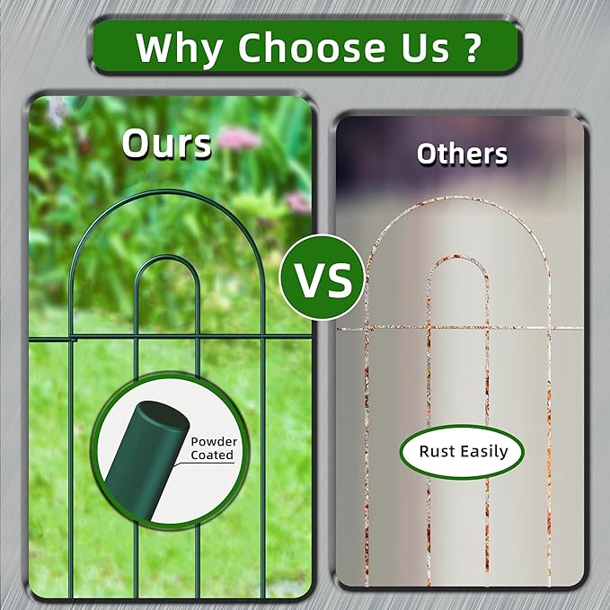 - EASY TO INSTALL: The decorative garden border fences is easy to install, sturdy. This garden folding fence is also very convenient and practical in terms of practicality. Outdoor fences for yard can not only protect flowers and plants, but also the arched design will become the best decorative element in your garden, metal wire fencing add new scenery to our garden.