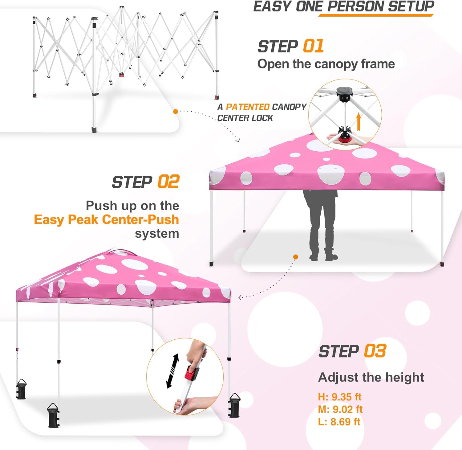 EAGLE PEAK Pop Up Canopy Tent with Wheeled Carry Bag, 8 Stakes, 4 Ropes, 4 Weight Bags, Easy Set Up Tent Canopy, 10x10 ft, 100sqft of Shade, Pink Mushroom