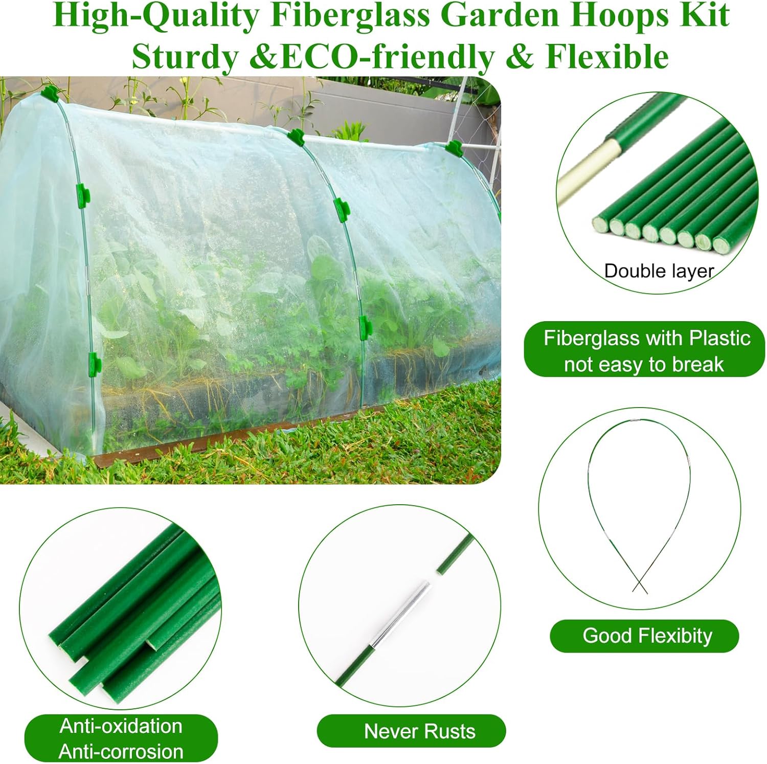 - Premium & Rust-Free Material : Our Garden Hoops Kit plant stakes made of Sturdy and heavy duty fiberglass, double layer, bendable and has good flexibility, strong resistance, never rust and anti-oxidation, lasting long garden poles . Hoop House Greenhouse kit can help extend your plants growing season