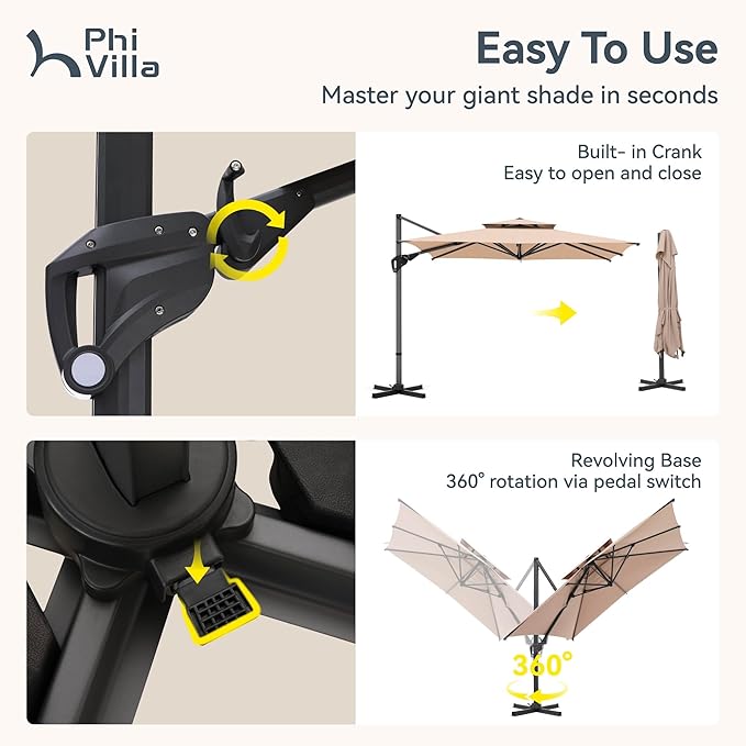 - Easily open and close: The upgraded crank handle lets you open and close the umbrella while keeping your preferred tilt setting intact