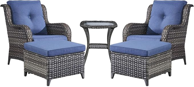 Rilyson Wicker Patio Furniture Set - 5 Piece Rattan Outdoor Sectional Conversation Sets with 2 Chairs,2 Ottomans and 1 Side Table for Porch Deck Garden(Mixed Grey/Blue)