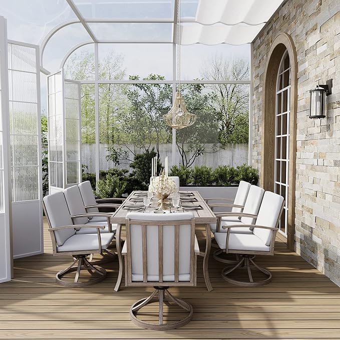HAPPATIO Aluminum 9 Piece Patio Dining Set, Outdoor Swivel Dining Chairs and Dining Table, Aluminum Outdoor Dining Set for 8, Patio Dining Furniture with Washable Cushions (Gray)