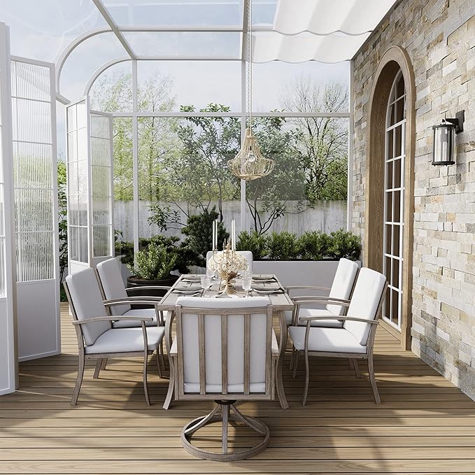 HAPPATIO 7 Piece Patio Dining Set, Aluminum Outdoor Dining Set for 6, Patio Furniture Sets, 2 Swivel Dining Chairs, 4 Dining Chairs, Aluminum Furniture Set for Patio, Yard (Gray)