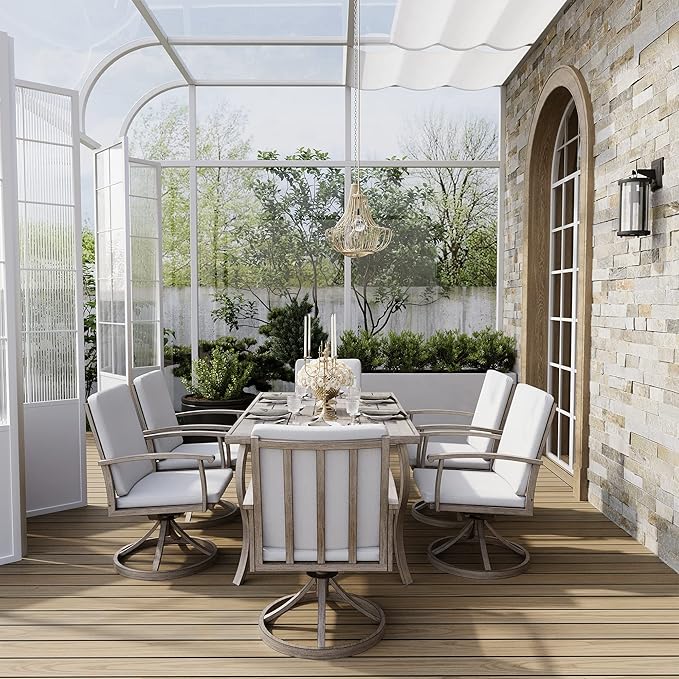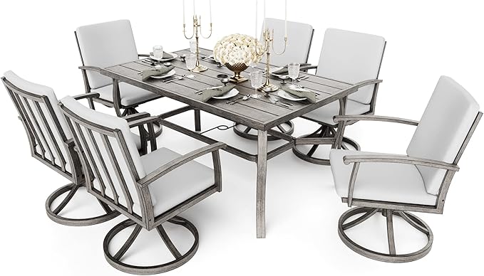 HAPPATIO 7 Piece Patio Swivel Dining Set, Aluminum Outdoor Dining Set for 6,Dining Table and Chairs Set, Patio Dining Furniture with Aluminum Table, Swivel Chairs and Washable Cushions (Gray)