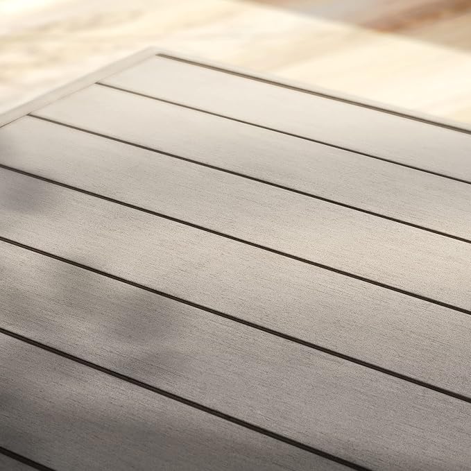 - 【Aluminum Frame】The lightweight aluminum frame of the dining set ensures that our outdoor dining furniture is easy to move yet will not rust. Aluminum is strong and will last a long time in your yard or on your deck, patio, or porch. Each chair can safely support 250 pounds of weight.