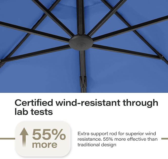 - 【2025 NEW UPGRADED FEATURES】 This offset patio umbrella's canopy is made of premium yarn-dyed polyester fabric (added 40g, more durable), UV 50+ protection and water-repellent. Besides, you can decorate the umbrella with the velcro design for any look you want.