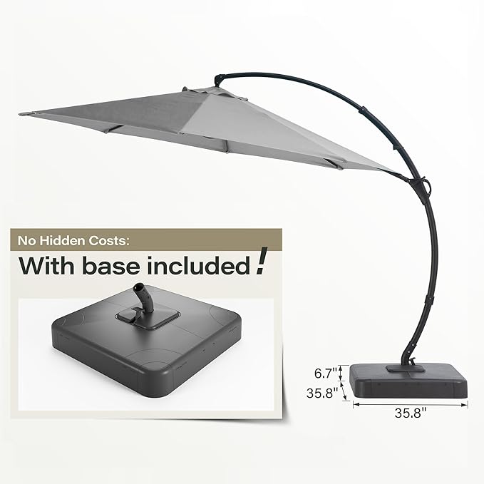 LAUSAINT HOME Outdoor Patio Umbrella with Base included, 12 FT Deluxe Curvy Cantilever Umbrella Heavy Duty Offset Hanging Umbrella with 360° Rotation for Market, Pool, Garden, Backyard, Deck (Grey)
