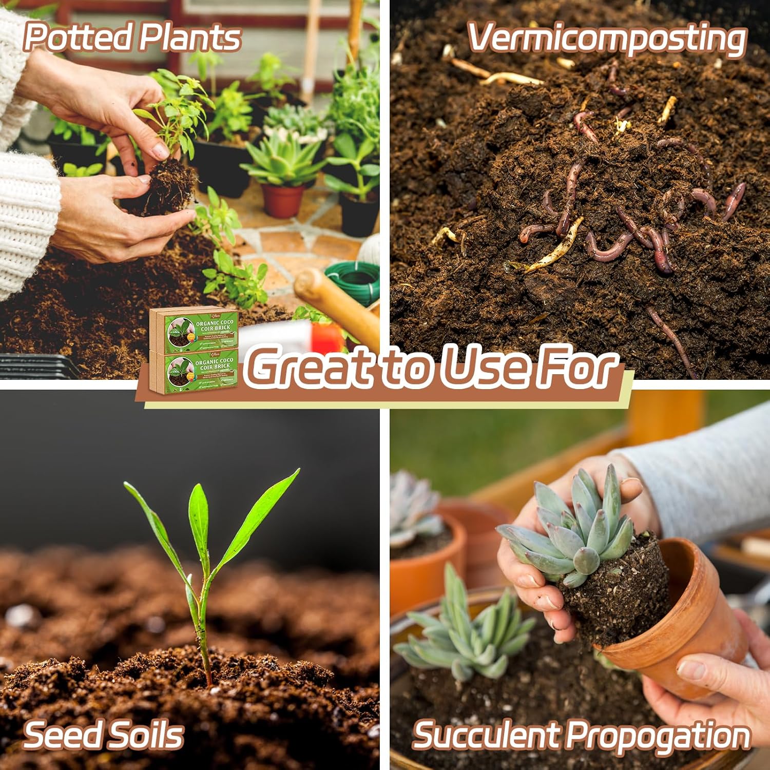 - Organic Coco Coir Bricks: Like to garden? Get this. Awesome coconut peat brick will promotes healthy root growth! These seed starter soil are lightweight and absorbent, easy to manage even for garden beginners. No problems with overwatering and rotton root, making your garden soil lighter and keeping it moist longer