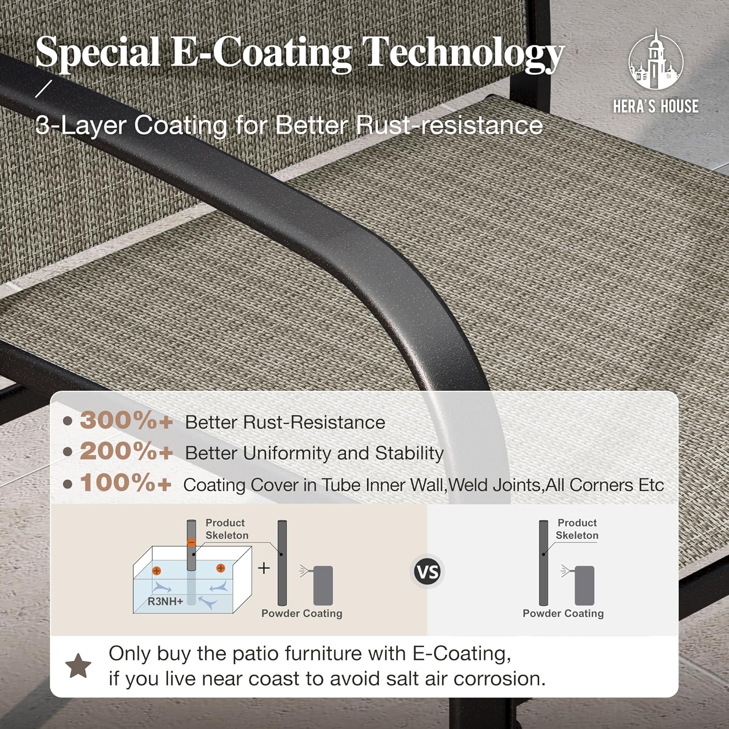 - 【ALL WEATHER PATIO DINING SETS】The outdoor table and chairs are built to last with high-performance E-Coated& Powder-Coated Steel that resists rust, fading, cracking, rotting, denting, and peeling, scratches, which is very durable and can withstand the test of outdoor environments