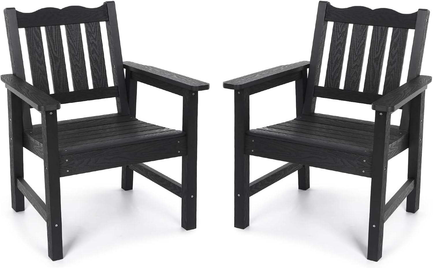 Stoog All-Weather Patio Chairs Set of 2, Outdoor Dining Chairs with Curved Backrest, 400 lbs Support Garden Chair, Black