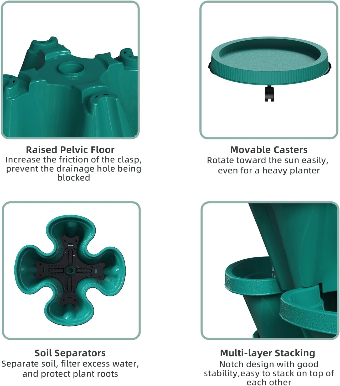 - 6 Tier Vertical Planter - 6 tier stacking planter, made of BPA-free material, can hold up to 24 different plants, such as strawberries, spinach, leaf lettuce, arugula, and mustard greens, and a few smaller herbs and flowers. Plus, it's the perfect vessel for strawberries as the berries cascade over the container lip.