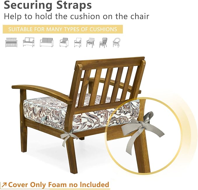 - Keep in Place: The long ties on both sides of cover attach the cushion to the chair or sofa so it won’t blow off with the wind.