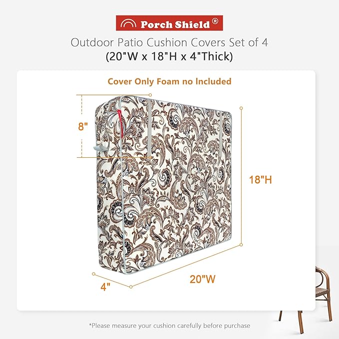Porch Shield Outdoor Cushion Slipcovers Patio Chair Seat Cushion Covers Set 4 Waterproof Fade Resistant, 20 x 18 x 4 inch, Paisley