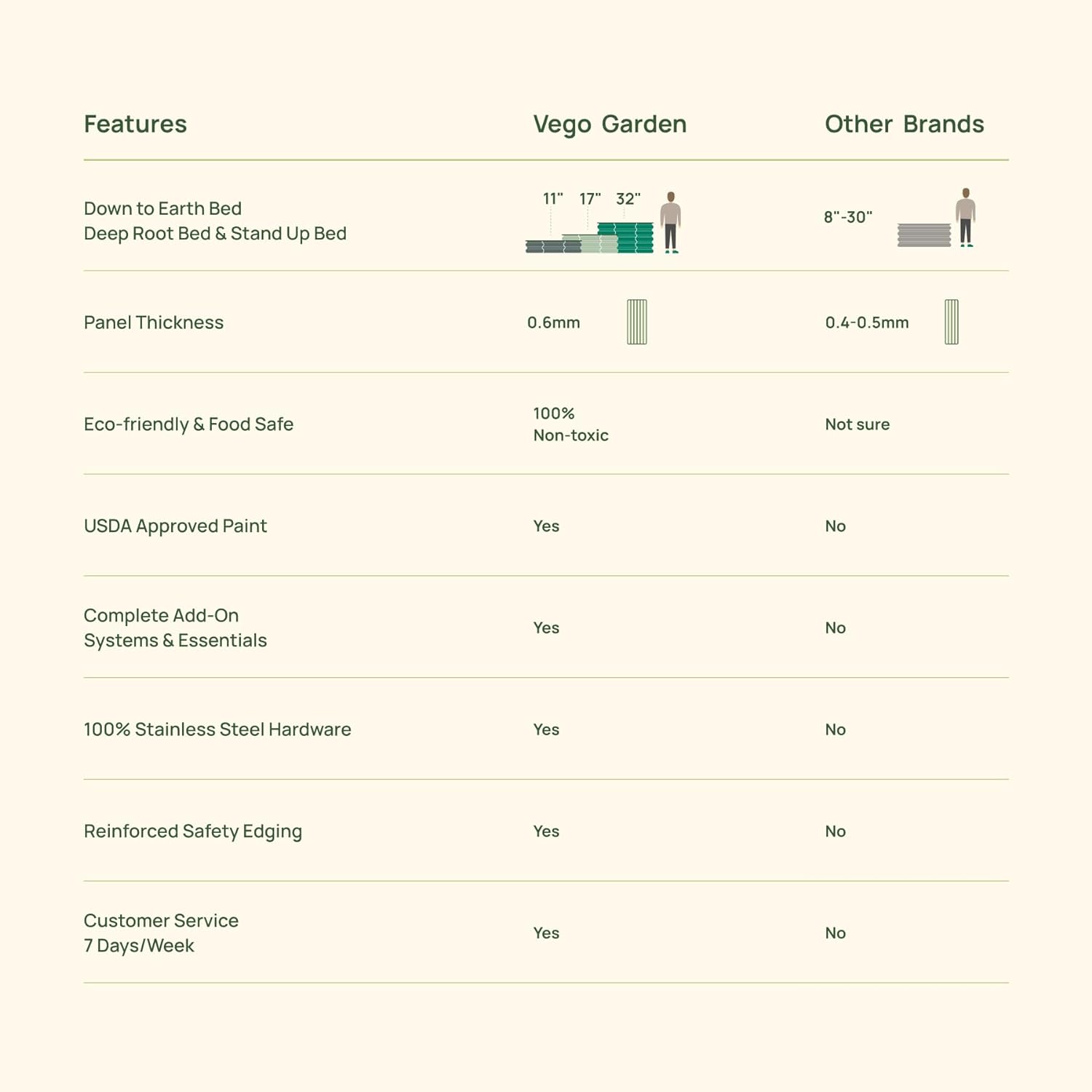 - Sustainability: Here at Vego Garden, sustainability is at the core of everything we do. We want to be as transparent as possible with our customers about the ways we are working towards our sustainability goals. By choosing to build your garden beds with recyclable, long lasting metal instead of using wood, by using Hügelkultur gardening method to increase the amount of waste converted by making composting, you can create an ideal ecosystem within the bed for your plants to thrive. With your help, we can grow a greener future