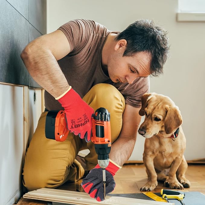 • High Quality & Exquisite Craftsmanship - With a seamless polyester lining, gauge 13, nylon lining for optimum comfort and softness, the latex coating gloves are covered with a natural latex wrinkle finish on the palm to give you better breathability, strength and abrasion resistance, dustproof, anti-static, protection from cuts and punctures. The latest knitting technology makes your work more convenient.
