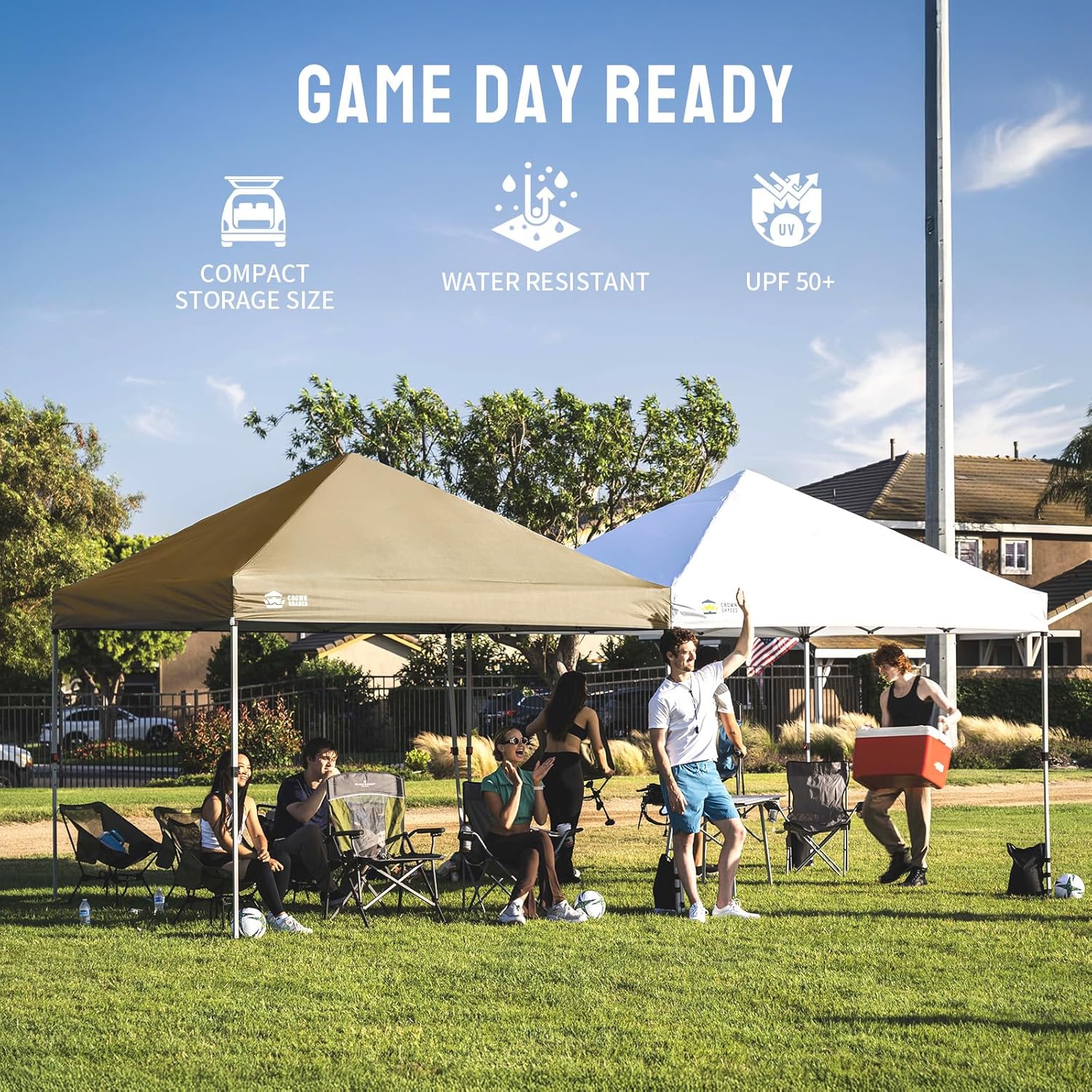 - EZ CLIP CANOPY FABRIC - The new clip system easily attaches the canopy fabric to the frame. The silver-coated interior provides UPF 50+ UV protection, ensuring cooler and safer shade. Made from rugged 150D fabric, the pop up tent is water-resistant and flame-resistant (CPAI-84). The EZ Clip system prevent wind lift and rain pooling, reducing fabric tearing risks. This innovative design is ideal for outdoor events and gatherings