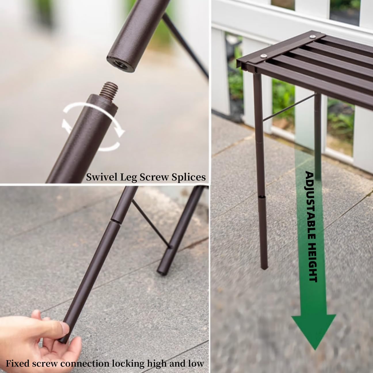 - Adjustable height: With 2 height options to suit a variety of outdoor scenarios, you can quickly and easily attach the sturdy telescopic table legs to raise the height of the plants display rack from 6.9 inches in the first height option to the second 13.1 height in inches.