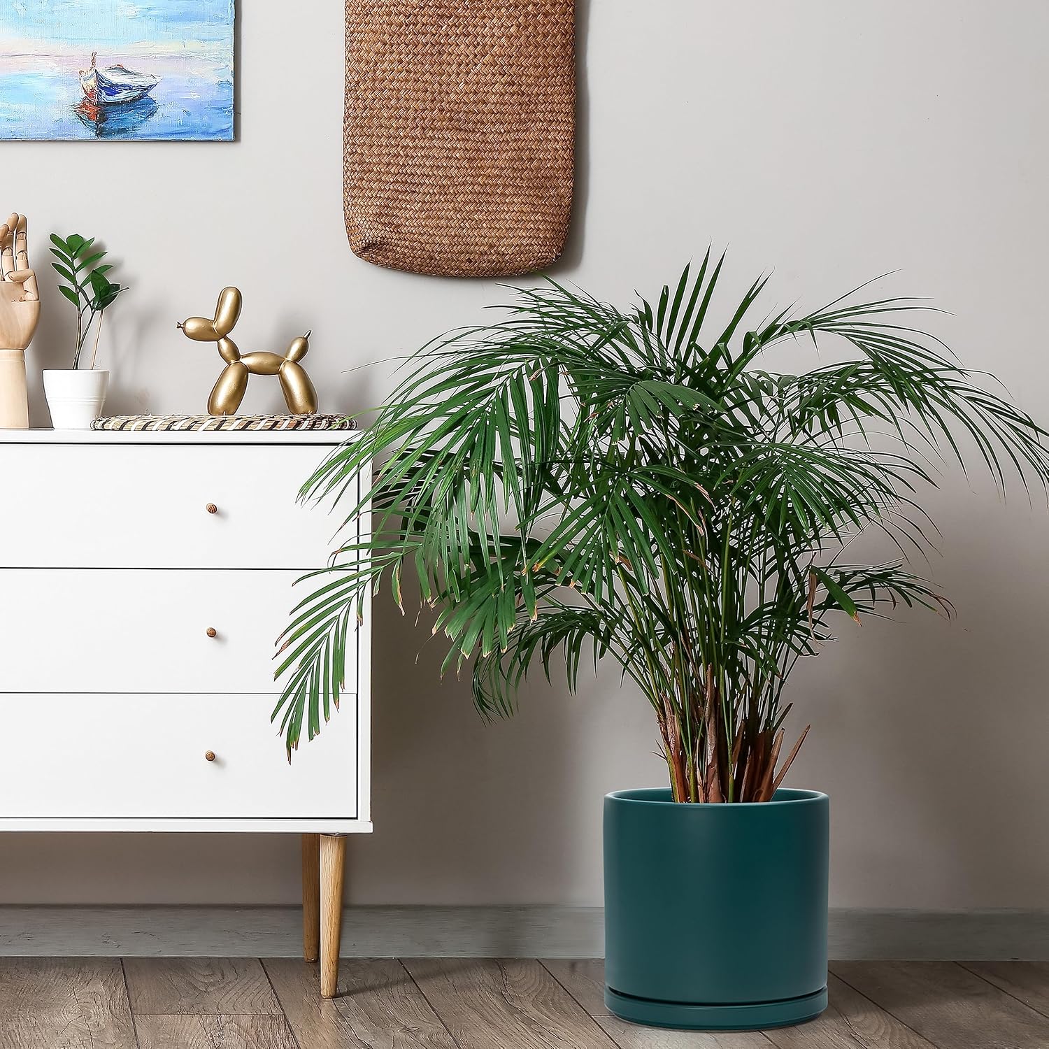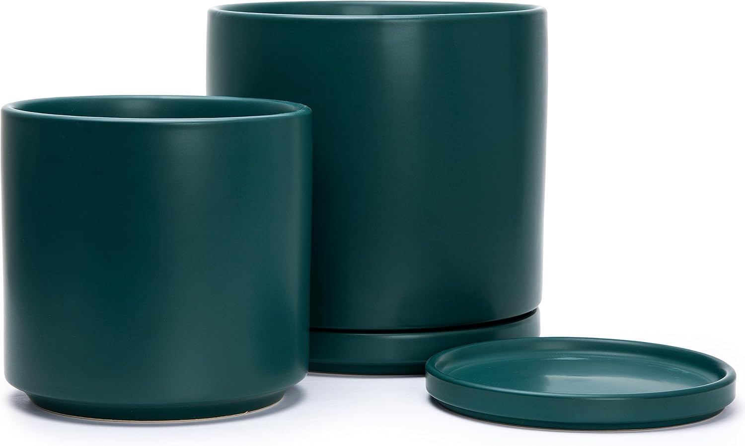 D'vine Dev 8 Inch & 10 Inch Ceramic Planter Pot for Plants with Drainage Hole and Saucer, Large Plant Pots Set, Teal, 94-G-L-9