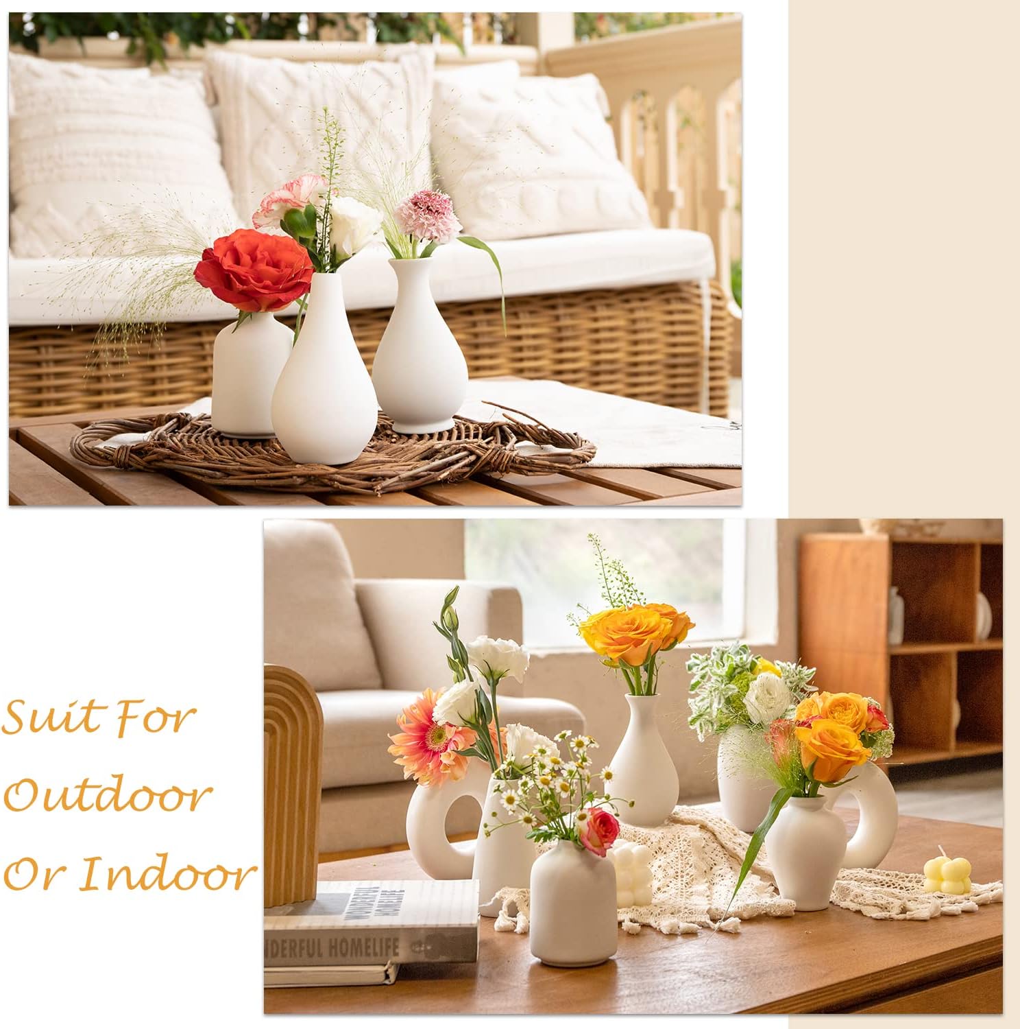- 【Multiple Uses】The white finish of the vase allows it to complement any flower or decor color scheme perfectly. These small ceramic vases perfect for displaying small bouquets of fresh flowers or colorful dried arrangements. Very suit for home decoration, dinners, wedding planning, living room, entry way, coffee table, wall shelf, windoor mantle ect.