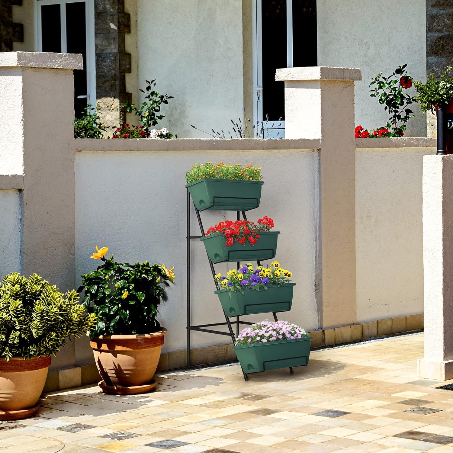OYEAL Raised Garden Bed 4 Tier Vertical Garden Planters Indoor Outdoor Raised Planter Box with Legs Elevated Herb Garden Planter for Flowers Vegetables Plants, Green