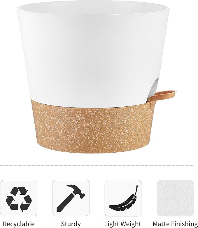- 【Innovative Self Watering Design】- Our flower pots are equipped with detachable deep trays that can store a large amount of water, enough to supply plants with water for up to 14 days, keeping your plants well fed and hydrated. You don't have to worry about your plants drying up when you are away on a business trip or traveling.