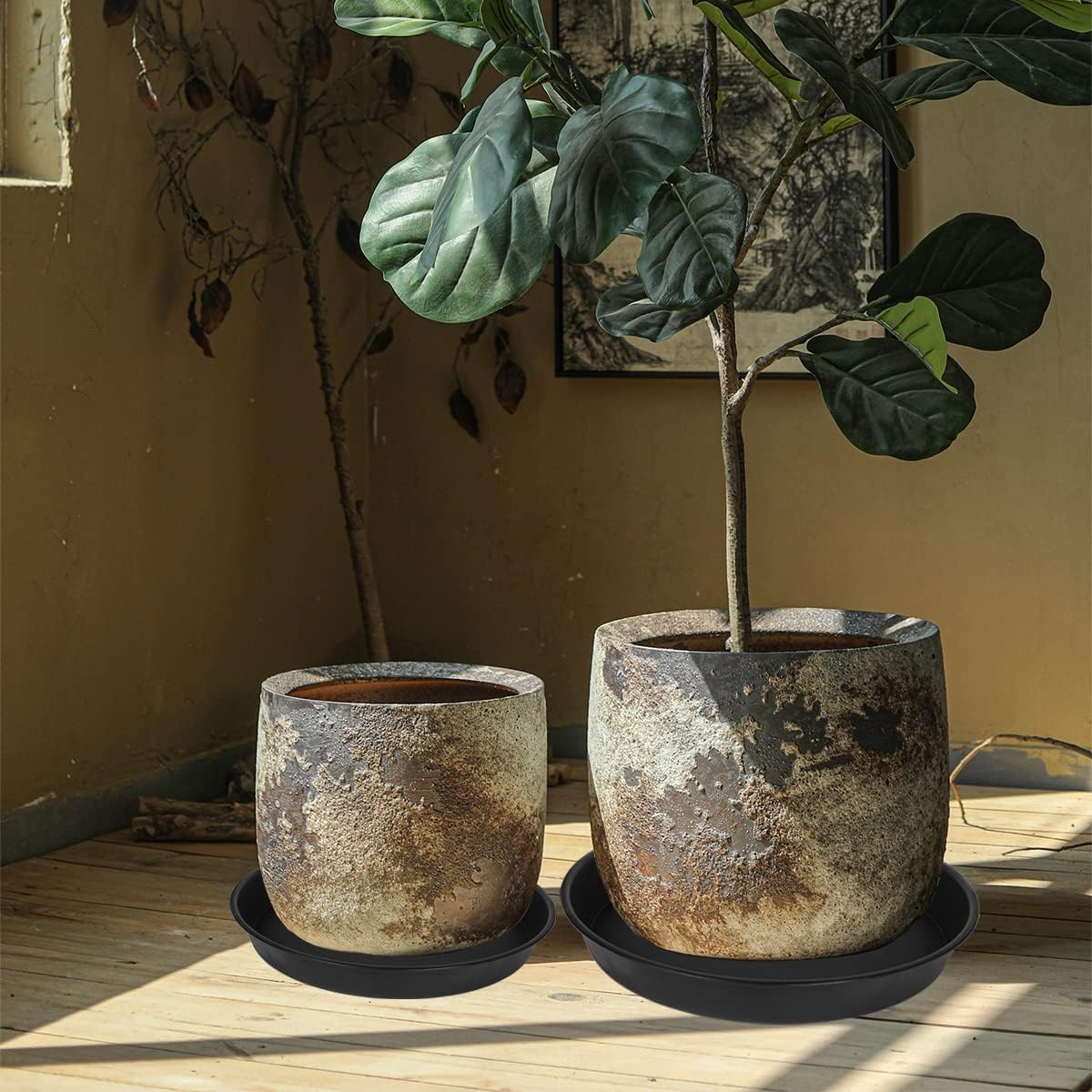 - 【OUTDOOR AND INDOOR USE】Long lasting strong and sturdy plastic tray is best choice for potted plants inside house or outdoor. No worries from Weather conditions for these plant saucers. Plant trays for indoors no holes. Keep the indoor clean.