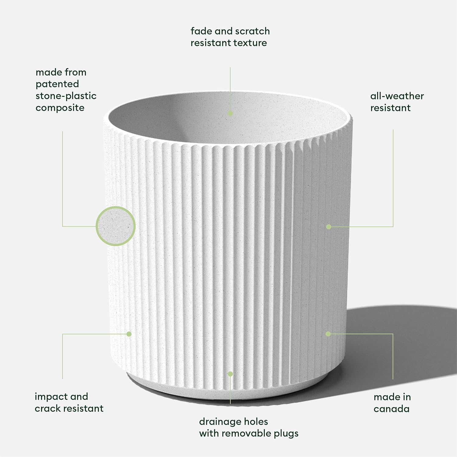 - DURABLE MATERIAL: Made from a plastic-stone composite, the Demi planter has a subtle textured finish and is all-weather resistant to cracks, scratches, UV and fading; perfect for hot or cold climates ranging from -20 to +120 degrees