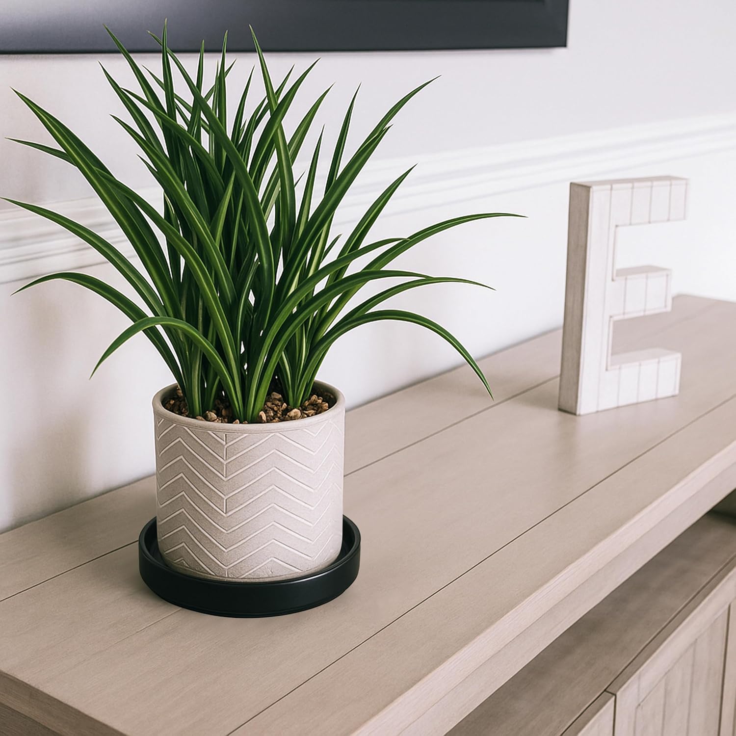 - Elegant Design: Functional and stylish, this round ceramic plant saucer adds a modern touch to any setting.