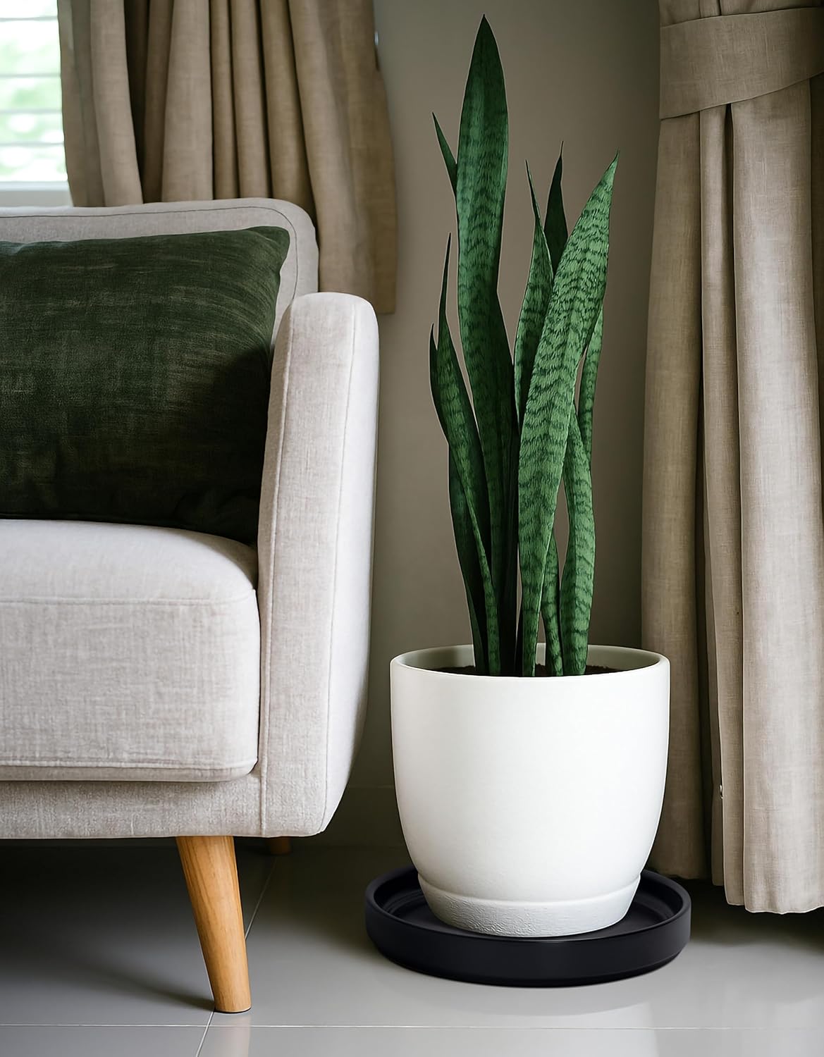 - Elegant Design: Functional and stylish, this round ceramic plant saucer adds a modern touch to any setting.