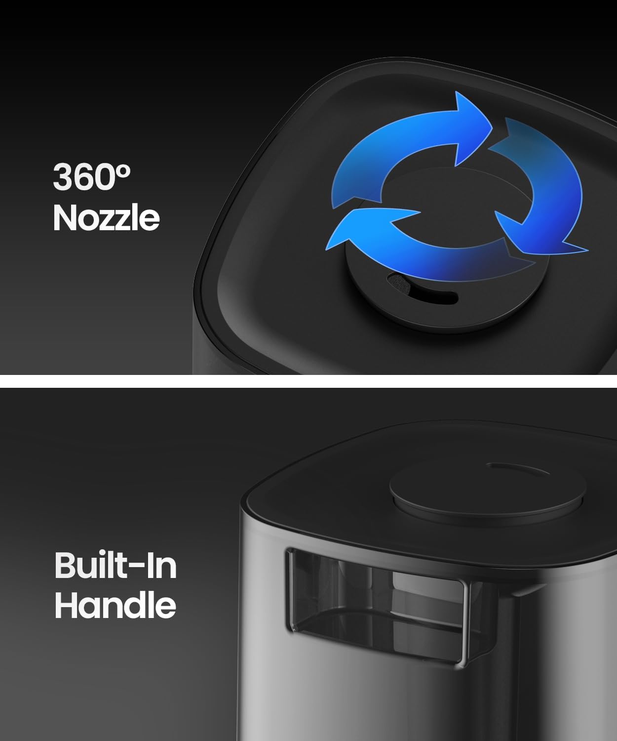 - CONTROLLED COVERAGE: With the 360° nozzle, you control the direction of the mist, providing focused humidity where it's needed most.