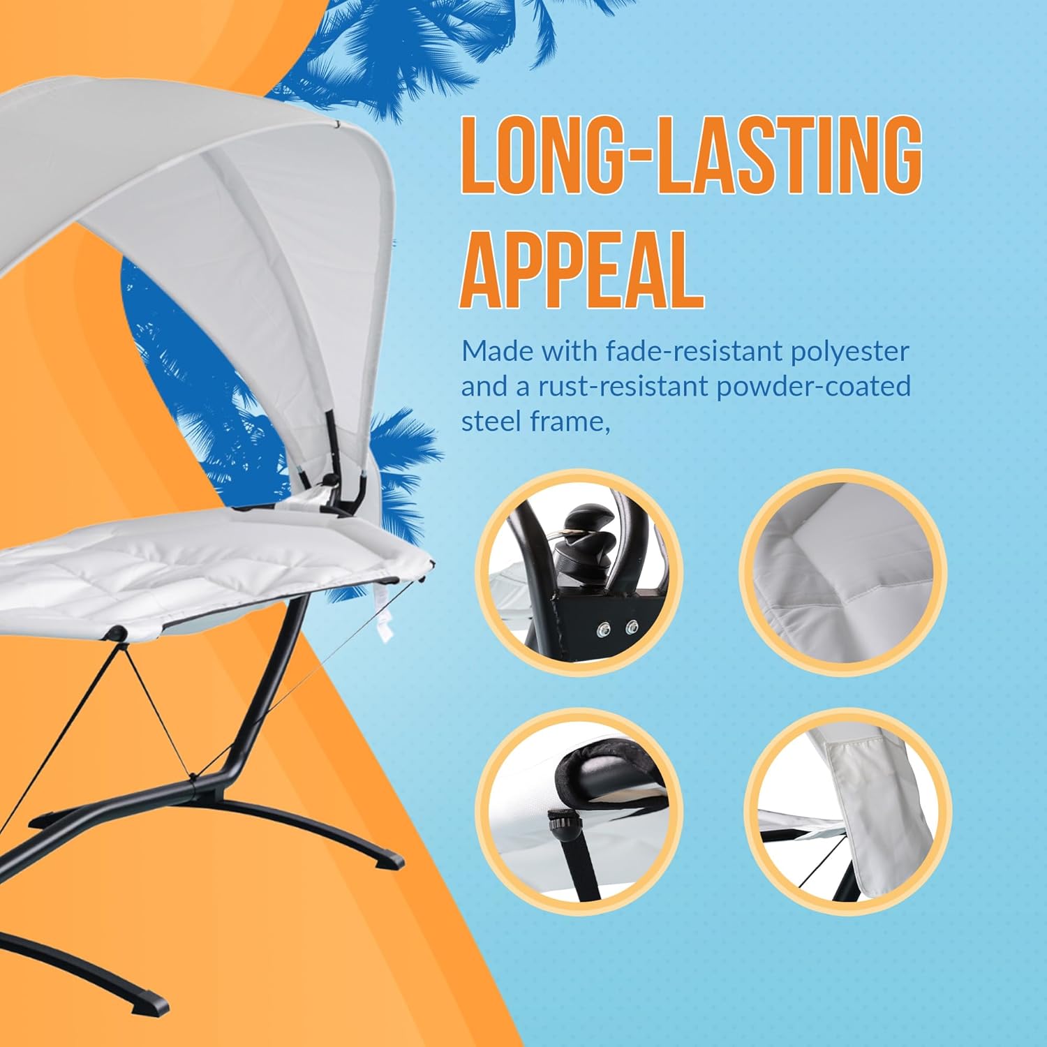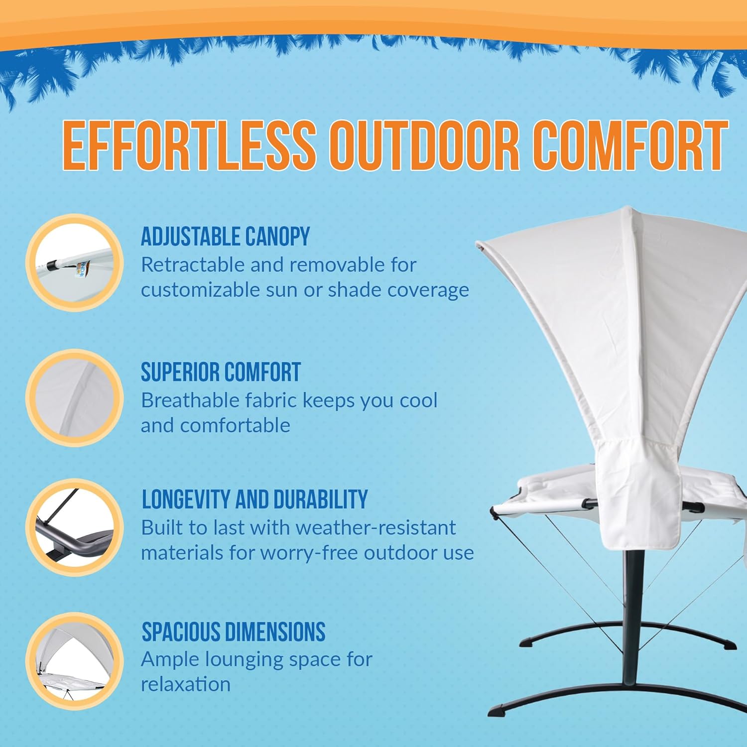 - INCLUDES COMPLETE SET WITH WARRANTY – Comes with a steel stand, hammock, canopy, and assembly hardware for quick setup. Backed by a 1-year limited warranty, ensuring peace of mind and reliable performance.