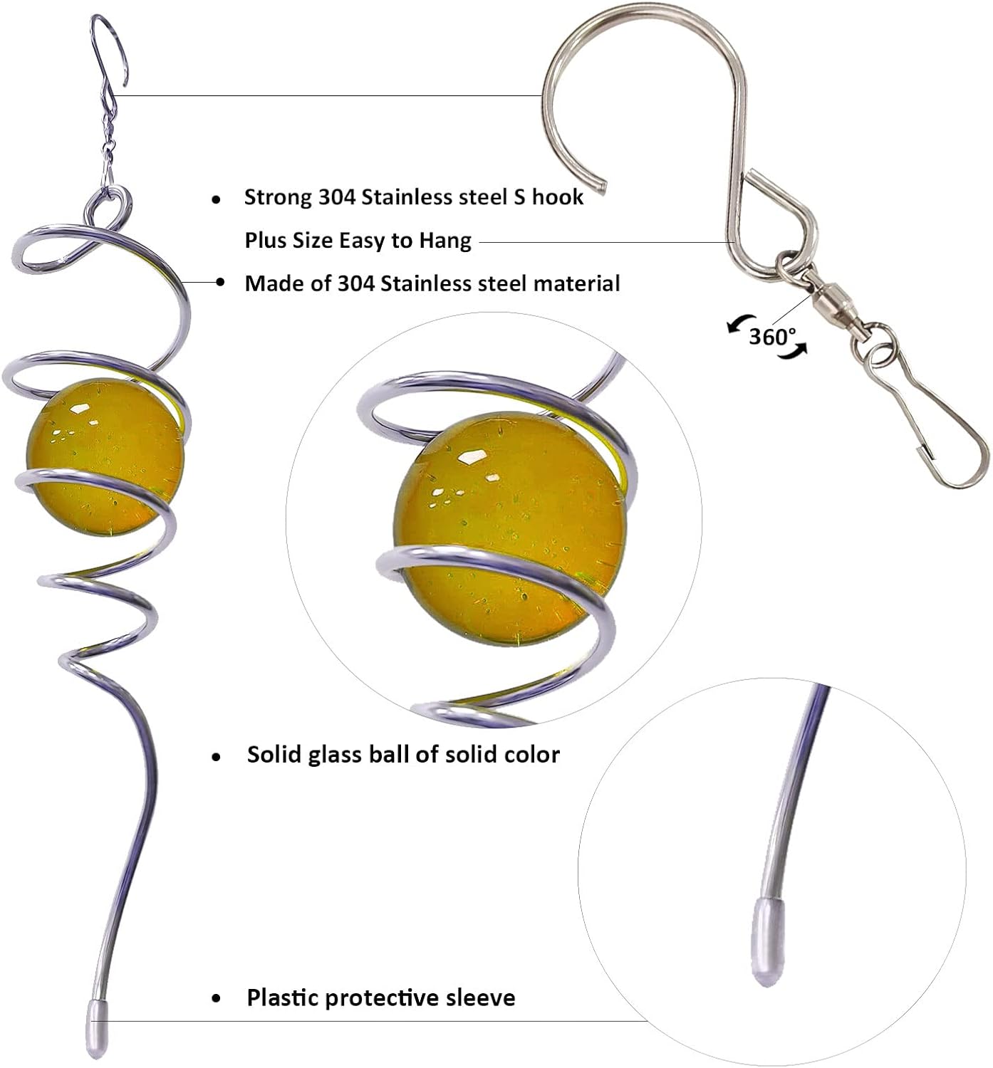 - 【High Quality】11inch height spiral tail made of #304 stainless steel wire,the 2inch colored ball made of pure solid color glass material,have good weather resistant,no fading under sunshine.Better quality than iron material with nickle plating and painting color glass ball in the market.