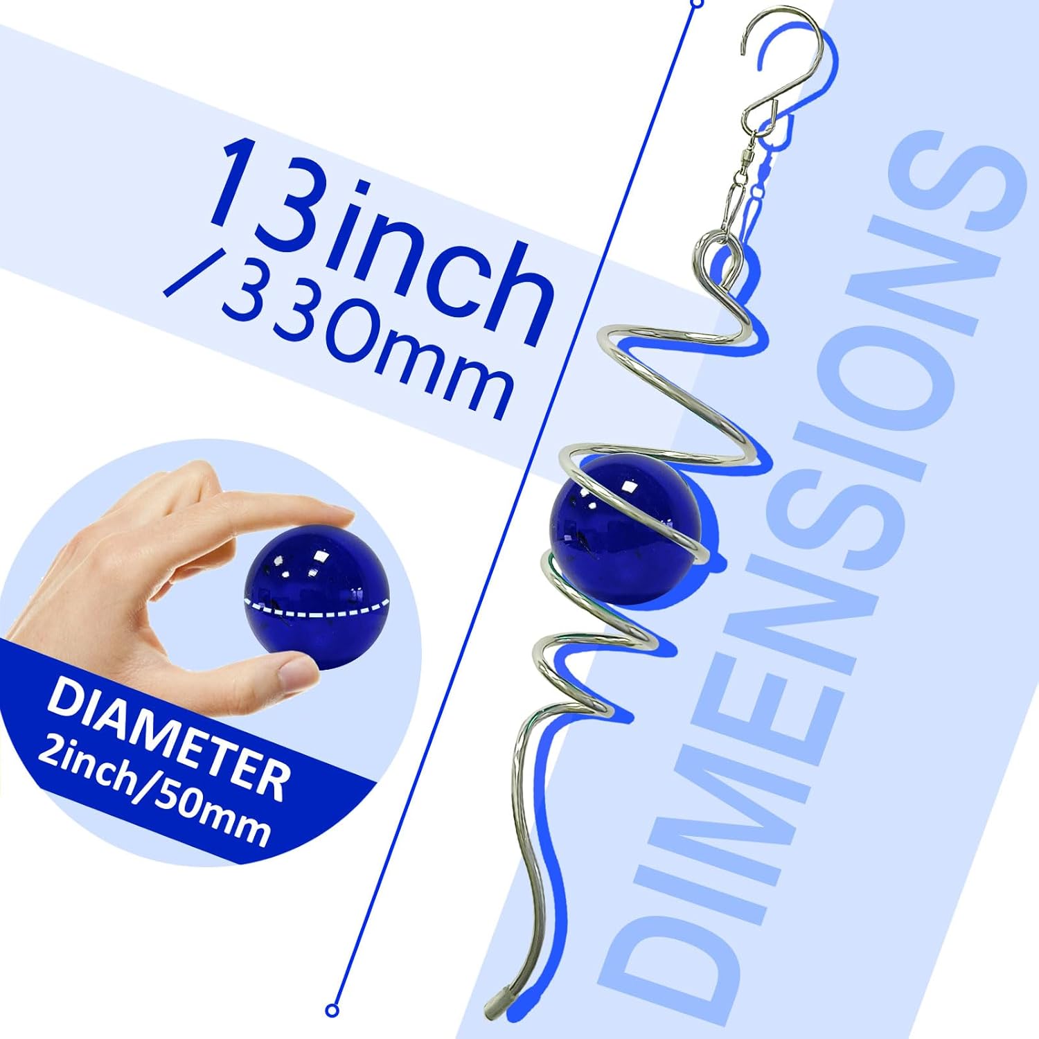 - ✔【Easy to use】The spiral tail wind spinner can't spin by itself ,if you want to make it spin like the video ,need add 1pc motor (not include) ,or combine it with a wind spinner or any rotatable hanging ornament to help it rotate. Come with 1pc 2 inch dark blue glass orb(not paint),1pc silver color spiral tail twister,and 1pc swivel hook accessory, ready to hang and enjoy.