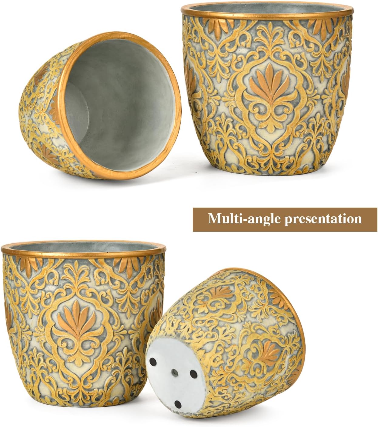 - Beautiful Pots: The cement planter is well crafted with hand glazeing and vinatge embossed pattern design, attractive color and texture, sturdy yet elegant, such a great gift for plant lovers.