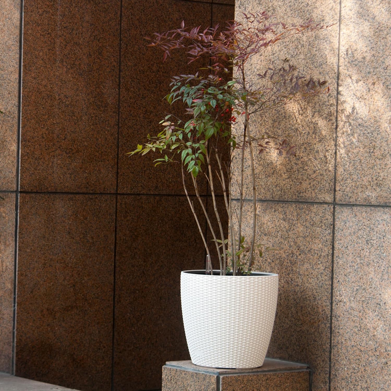Dexceder 15x14 Rattan Self Watering Planter with Wheels Indoor Outdoor, Inner Pot Design, Thickened Large Floor Standing Flower Plant Pot with Water Level Indicator (Ivory White)