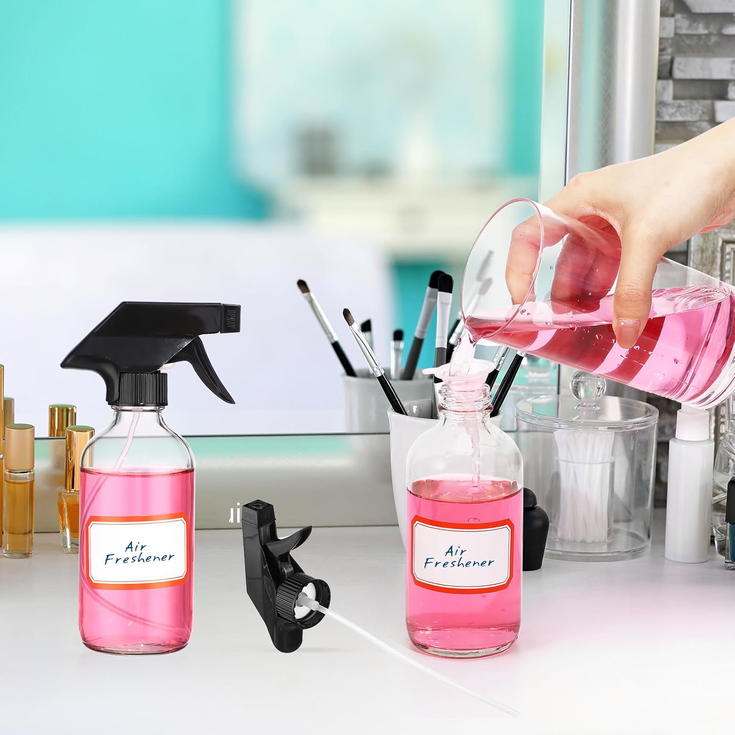 - Convenient Accessories: our glass spray bottle can be refilled, and the funnel can be applied to help avoid the liquid from overflowing, convenient to use; After filling the liquid, you write the liquid name on the label stickers, easy to find and identify