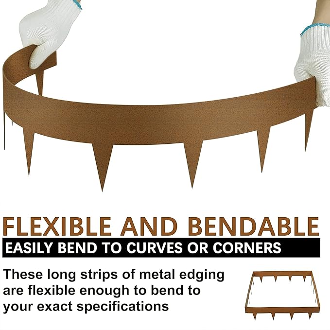 - FLEXIBLE AND EASY TO INSTALL: With 2.5" sharp saw teeth, this bendable hammer-in steel edging is easy to bend and install, (Note:Please wear gloves for installation); It can also be easily hammered back down; You can easily pull the edging up and reshape it to match a new shape