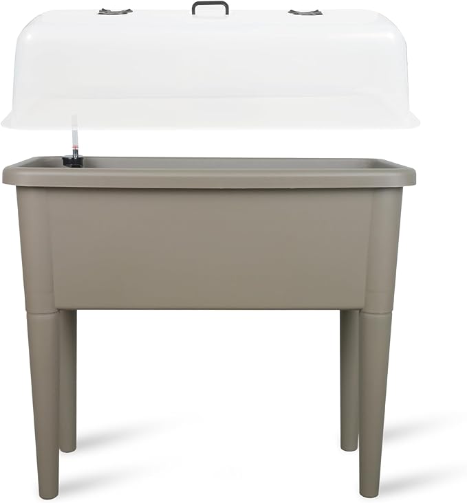 Dexceder 13.2 Gallon Self Watering Raised Garden Bed with Ventilation Transparent Lid Greenhouse, Deepen Vegetable Flower Box Planter Pot with Removeble Legs&Water Level Indicator (Light Brown)