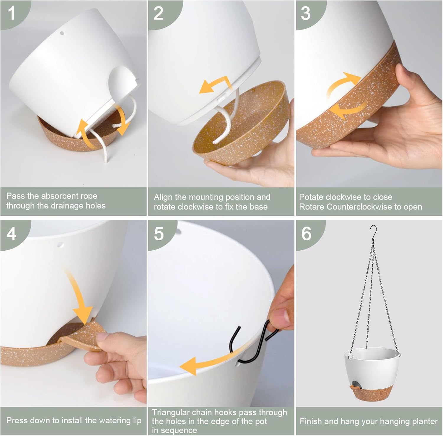 - Keep Your Plants Healthy - The self watering hanging planter features multiple drainage holes to help you avoid over-watering and release excess water. Separate the potting soil from the water surface, enter the water through cotton rope perforations to keep the soil moist and the roots healthy.