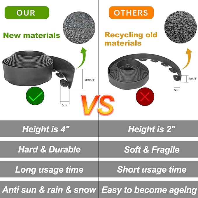 - < Durable & Flexible > Landscape Edging is made of premium PE material,which is flexible to be made straight or curve easily according your need. Easy to cut and durable to withstand the tough sunlight , heavy rain, snow etc.