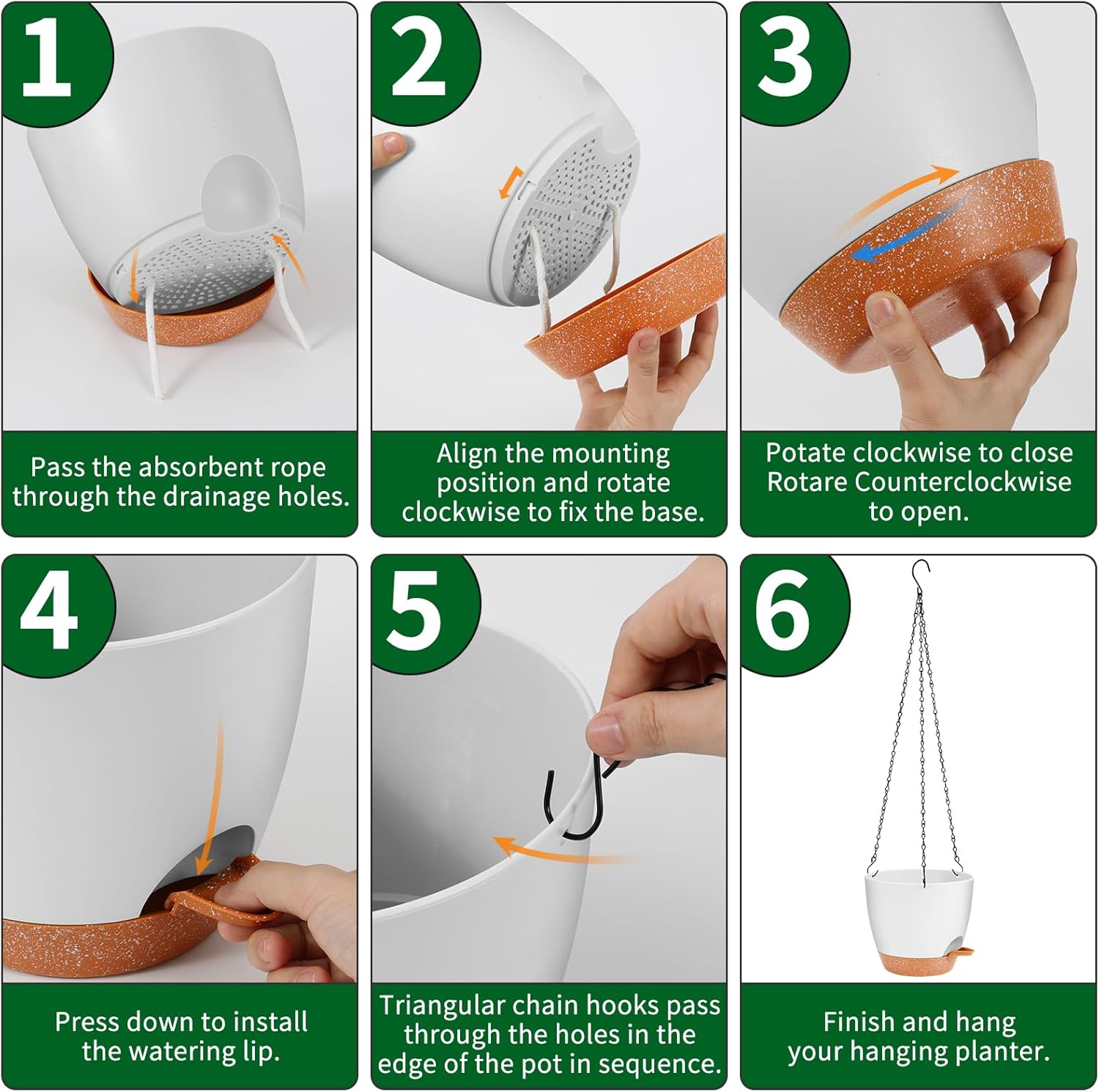 GARDIFE Hanging Planter, 8 inch Hanging planters for Indoor. Outdoor Plants, Self Watering Plant Pot, 2 Pack Large self Watering Hanging Planter (8-White, 8 inch)