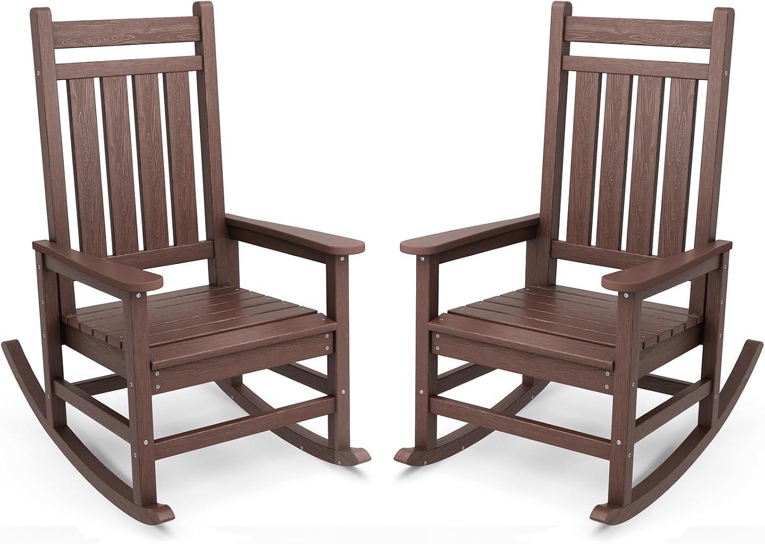 SERWALL HDPE Outdoor Rocking Chair Set of 2, Oversized Rocking Chairs, All Weather Resistant Outdoor Rockers for Lawn, Wooden