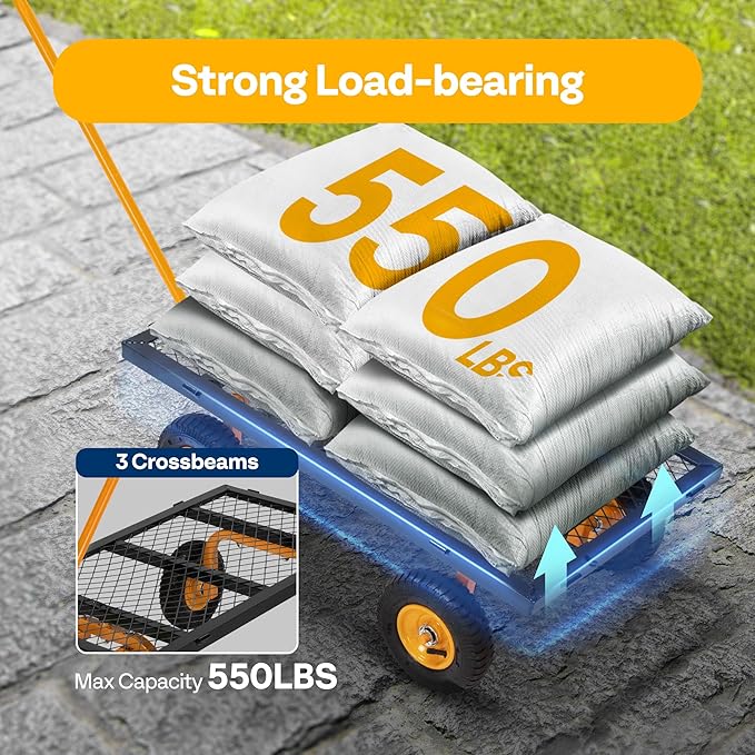 - POWERFUL LOAD AND LARGE CAPACITY - VIVOHOME's multi-functional garden cart has meticulous workmanship and strong design sense; This garden cart has a steel mesh bed that is 34’’ in long and 18’’ in wide, carrying large amounts of planting tools with ease; Its maximum load can reach 550 lbs.; From chopped wood to fertilizer, you can carry them with this practical and convenient cart with ease (to prolong its life, long-term heavy loading is not recommended)