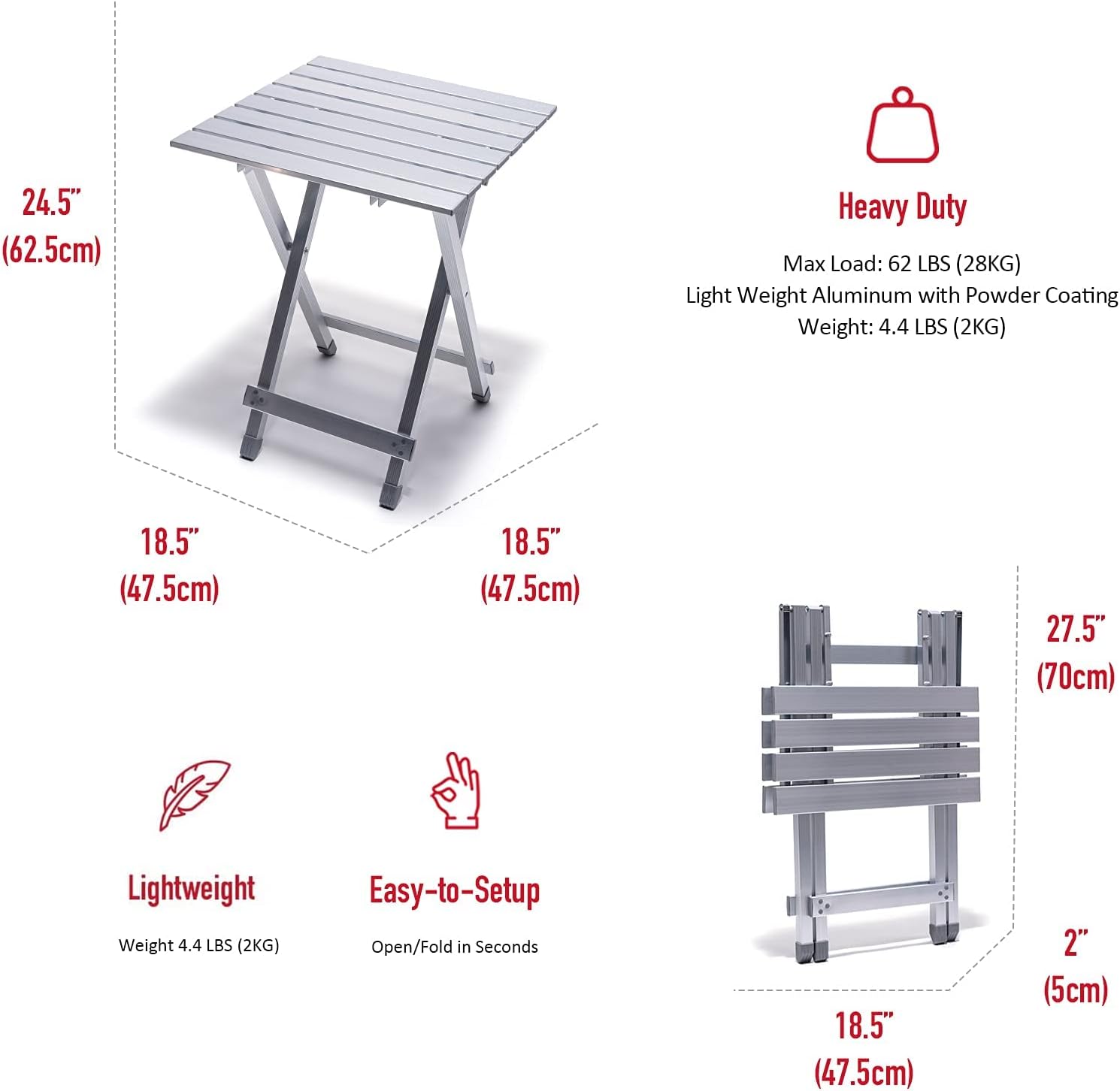SUNNYFEEL Folding Camping Table - Lightweight Aluminum Portable Picnic Table, 18.5x18.5x24.5 Inch for Cooking, Beach, Hiking, Travel, Fishing, BBQ, Indoor Outdoor Small Foldable Camp Tables
