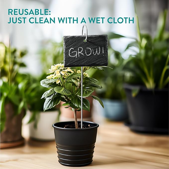 - STYLISH GARDEN MARKERS: Use the slate hanging labels to mark plant names, dates, instructions and more. Organise and track vegetable or herb seeds, while adding a charming touch of decor to your outdoor spaces.