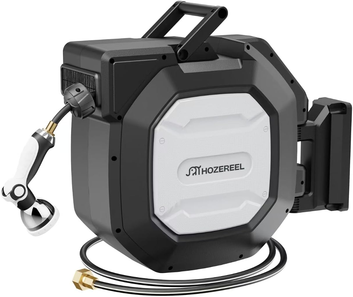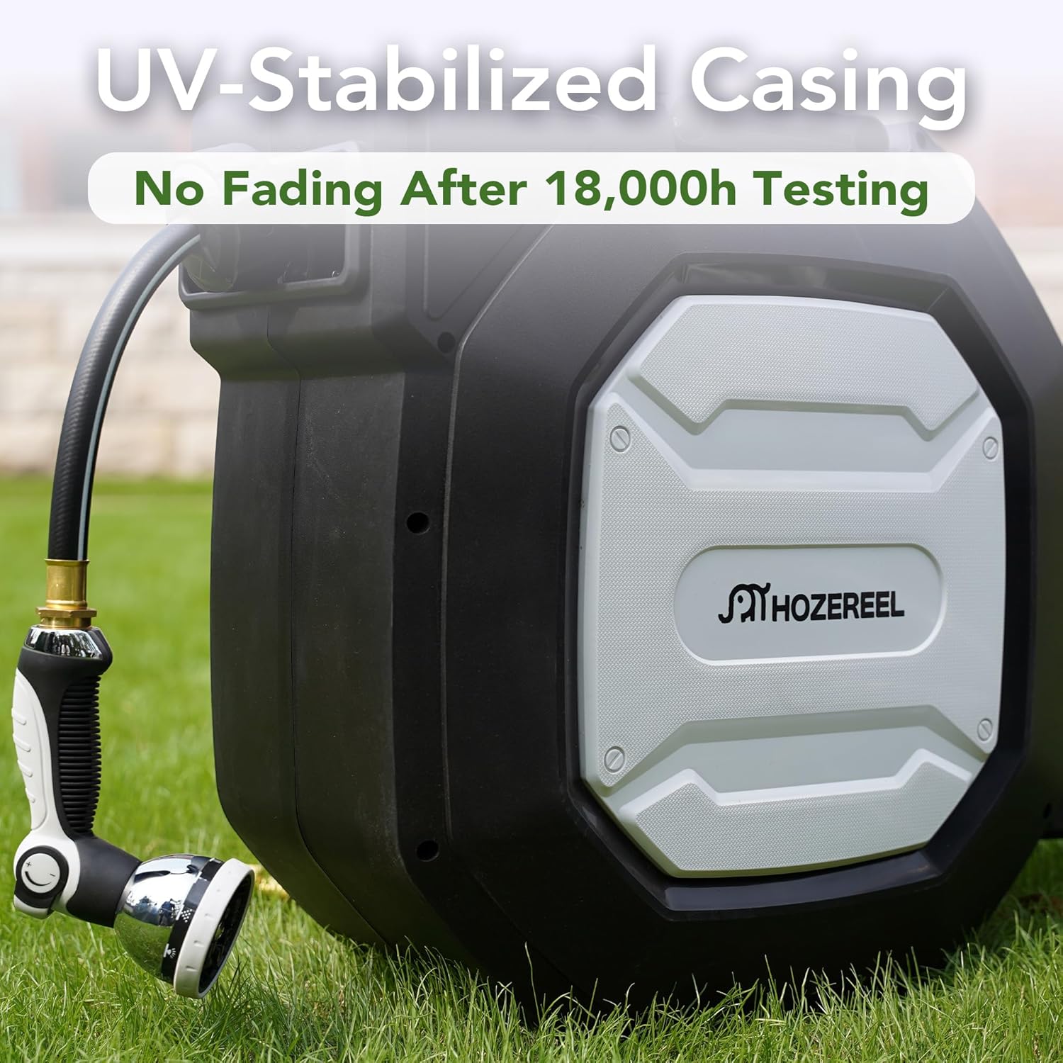 - 【Heavy Duty for Long Term Using】: The HOZEREEL hose reel is well built and no leaks in normal everyday use. The hybrid hose is strengthen construction and the connect fittings are made of brass.